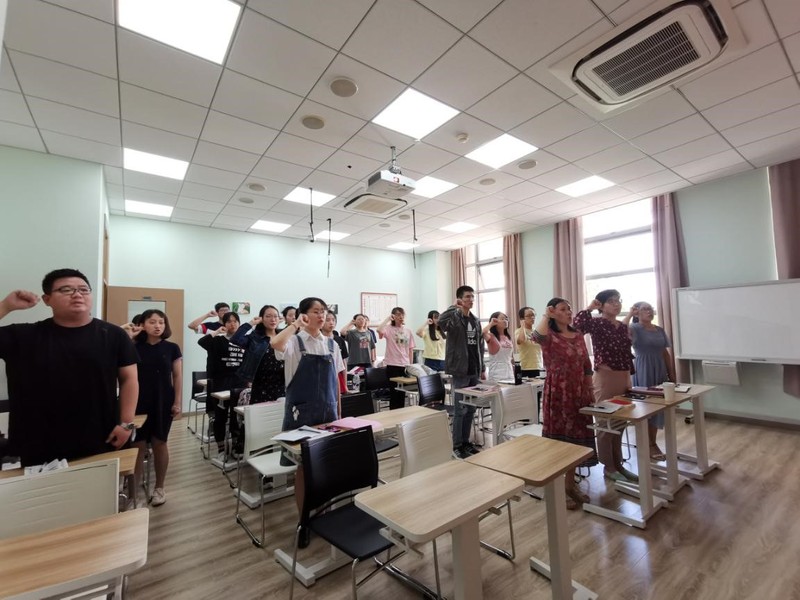 动员会的最后,全体党员同志在沈漫老师的带领下重温入党誓词,追寻初心。