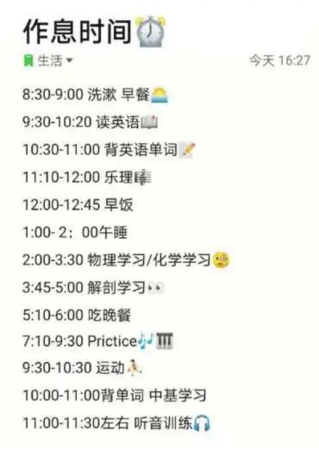 一看就知道是一位精致的女孩纸,学习、陪伴家人、护肤、音乐……无论是学业还是生活,都有在认真对待~ 从早八点半到晚十点半,精细的时间划分和规律的作息安排,都值得我们学习哦!