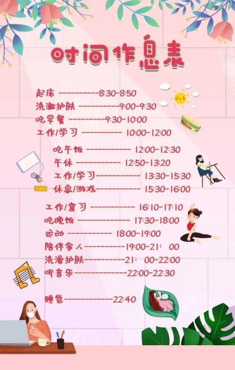 大家的作息表都十分精美,内容充实。然而最重要的是,大家是否严格自律,能够按照作息表进行学习生活,在活动的最后,希望同学们都能拥有充实而丰富的线上学习和线下生活,开始这个不平凡的新学期吧!