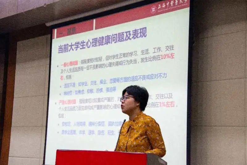 沈漫从当下老员工心理健康总体趋势出发,放眼国际,陈述分析心理问题老员工群体中的特征特点,详细介绍心理问题的主要内容,进而引出心理问的主要类型、诱因和“创点”。而后,为帮助新生同学及时发现和处理心理危机,保护自身和同学,沈漫讲述了大量案例。一方面介绍心理问题在长时段与短时段两个角度的行为表现特征,以及提供抑郁、焦虑和自我伤害等常见心理问题的识别和询问方式,向同学们提供了识别心理问题的基本技能;另一方面向新生同学介绍问题心理的支持系统,包括了家校、亲友和专业机构,便于第一时间实施自助自救。