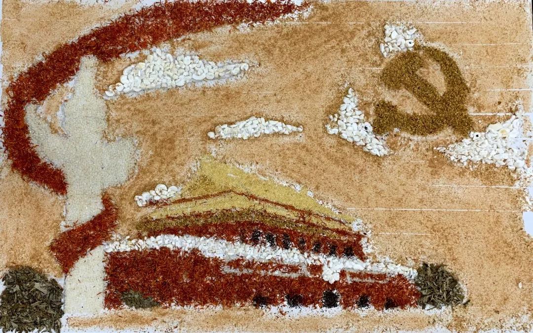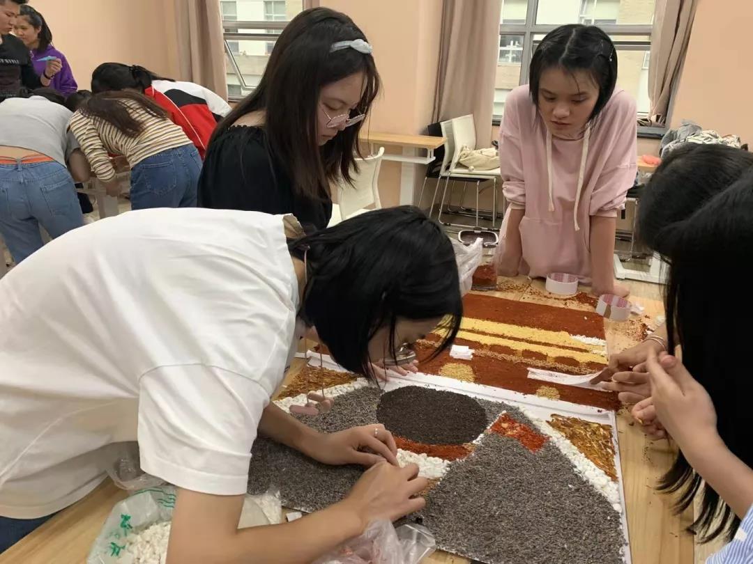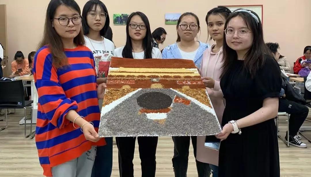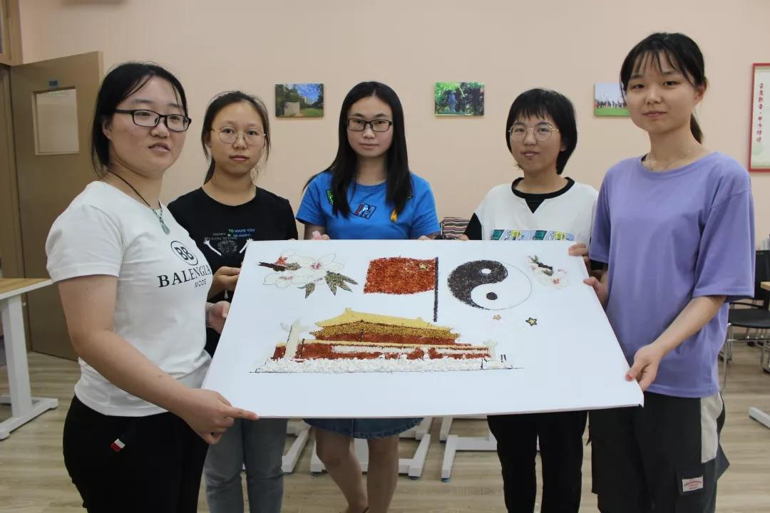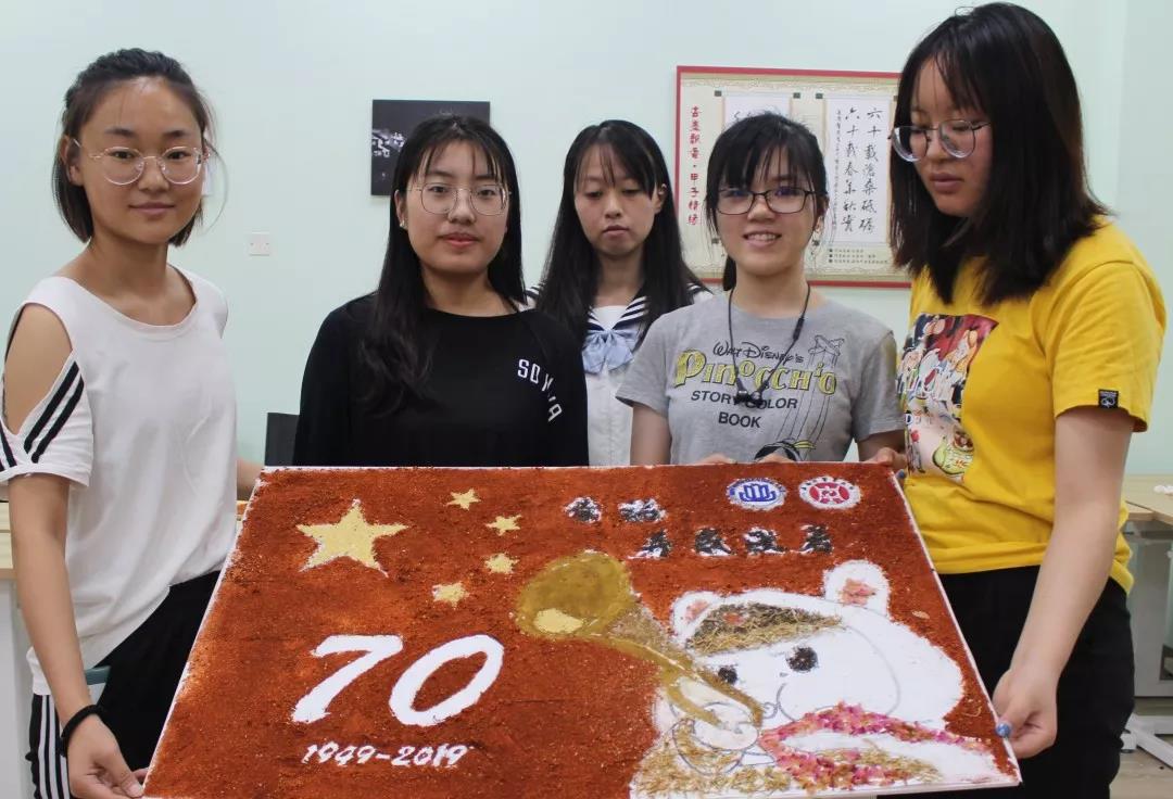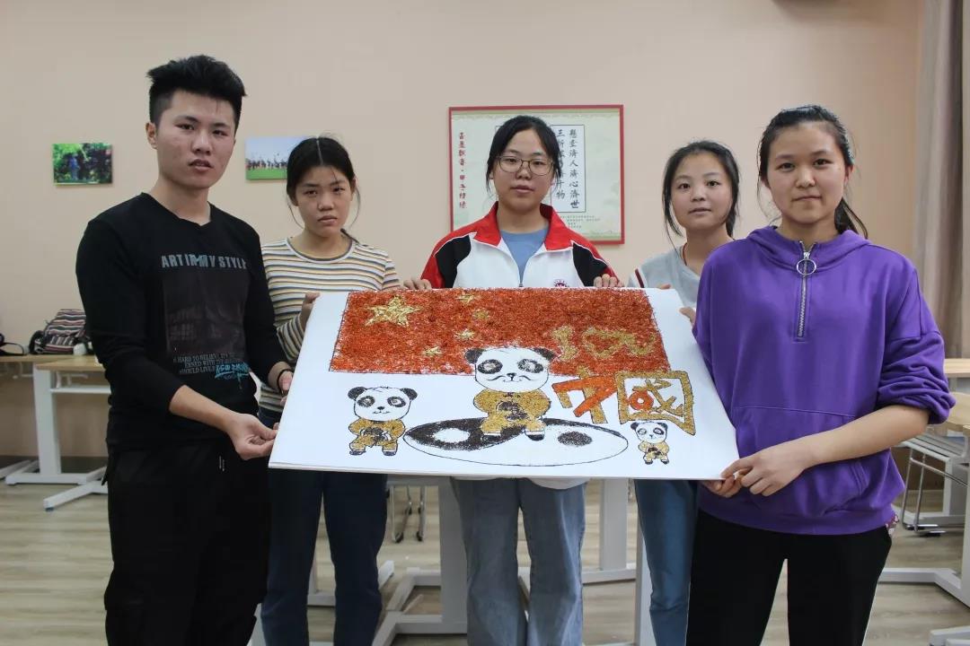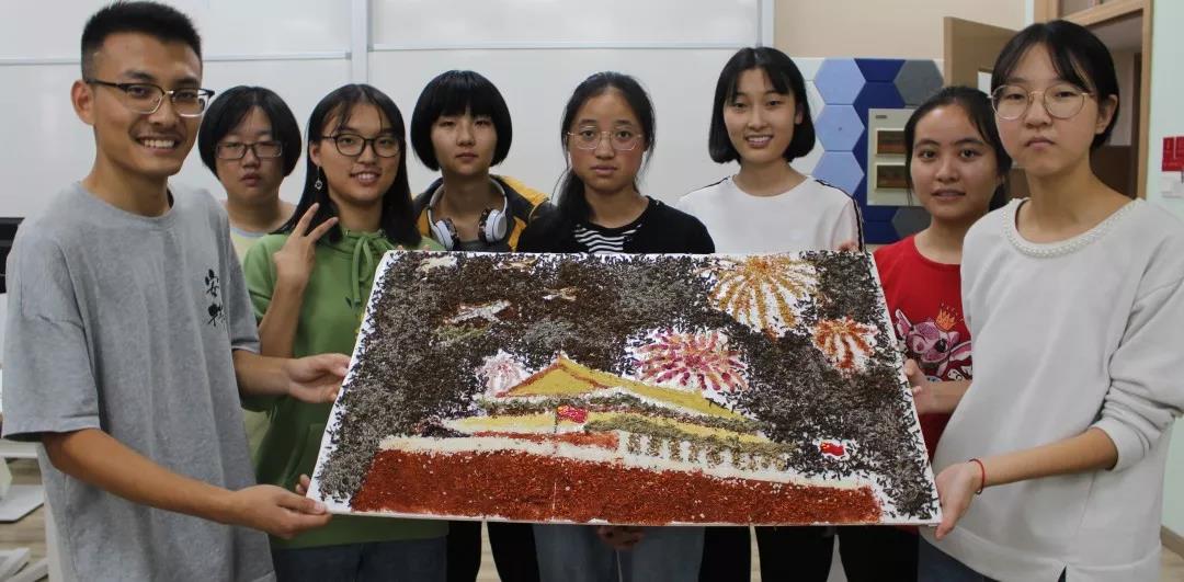 参加比赛的同学们兴趣盎然,全身心投入到中药贴画的氛围中,小心翼翼,却又兴奋难耐。时间流逝,画板渐渐被散发特殊香味的中药填满,化作了国旗、天安门、和平鸽……经过手忙脚乱、状况百出的两个小时后,在所有人的耐心、坚持下,11份以“庆祖国70周年”为主题的作品由红花,丁香、冰片、薰衣草、艾叶、茯苓等材料组成,借此来祝祖国母亲生日快乐。