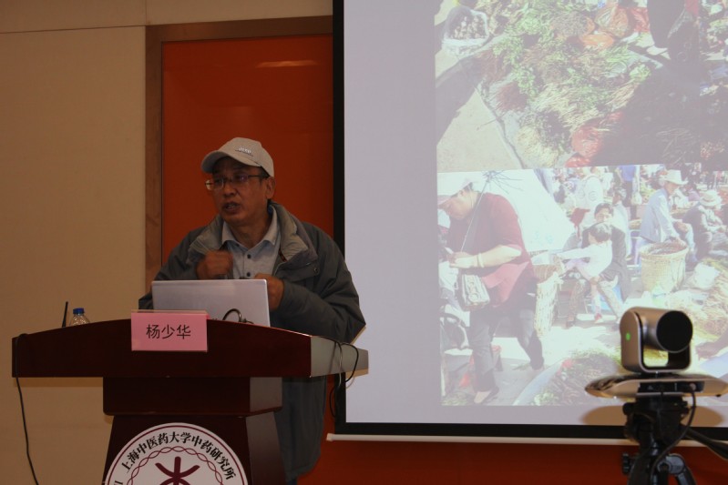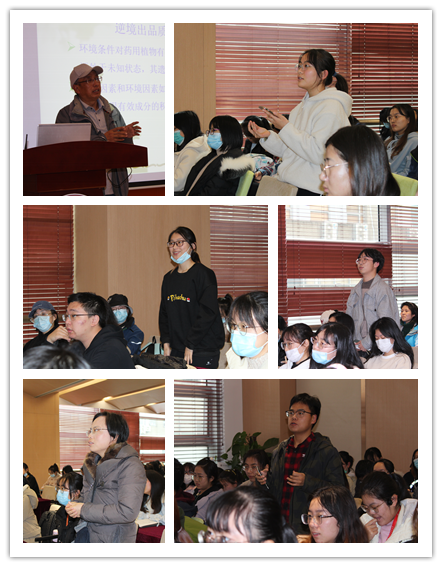 讲座正式开始,杨少华研究员作了题为“云南丽江高山药用植物资源及道地药材规范化种植技术”的报告,围绕云南的地形、气候等自然条件、自然资源普查等方面介绍了丽江的植物资源以及其团队所作的一系列工作,包括丽江市中药资源普查、药材市场走访、标本制作以及重点品种调查等。以云木香为例,介绍了道地药材规范化种植技术的研究,从品种溯源、基地生态环境及种子质量检测、到规范栽培管理过程作了大量细致的基础工作,最终通过了国家GAP认证,并通过开展培训,将云木香的规范化种植科普给种植农户和生产管理人员,真正让科研服务于生产。讲座内容也引起了线上线下师生的极大兴趣,纷纷通过问卷、现场提问的方式与杨少华研究员交流,互动氛围热烈。