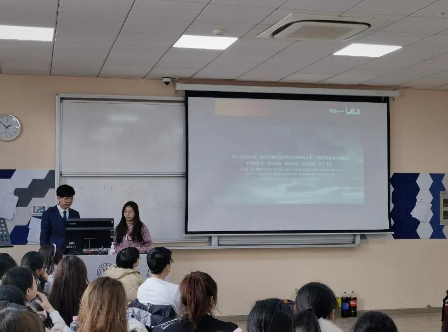 班级团委以ppt上各种有关四史的简单小题目开场,将班级同学分为7组,用“打电话”的形式进行抢答,且答对有奖,以此激起了同学们广泛参与的热情,答对题目较少的小组进行了有趣的真心话大冒险,引起班级阵阵欢笑。