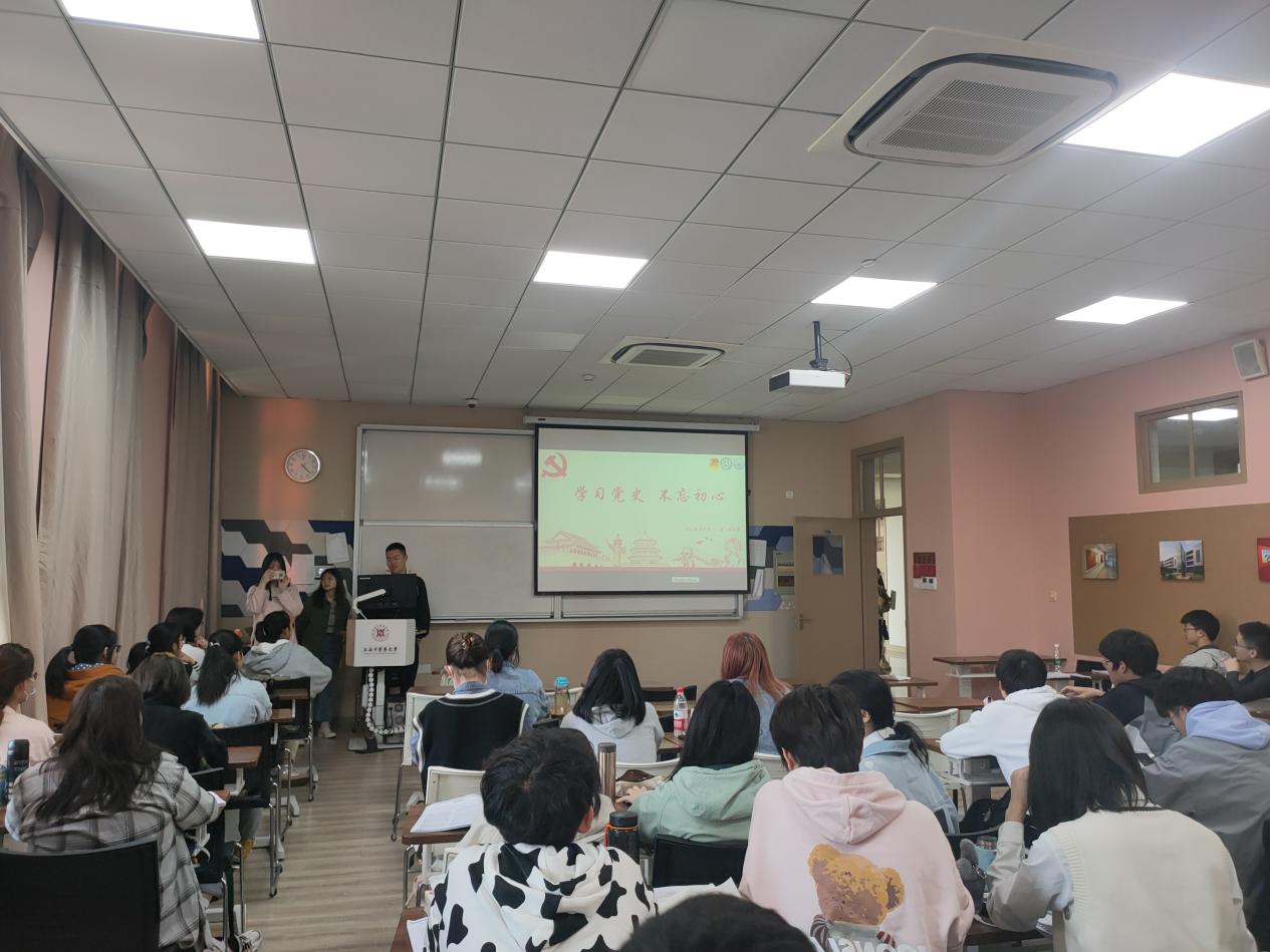 胸怀千秋伟业,恰是百年风华。2021年是中国共产党成立第100周年,站在“两个一百年”奋斗目标的历史交汇点,开展党史学习教育,正当其时。2021年4月20日,组织开展了“学习党史,不忘初心”的党史学习教育,本次活动观看了中共党史专题讲座的系列视频,讲解了中国共产党百年奋斗历程,帮助同学们更深入地学习党史,了解党史,用党的奋斗故事感染人,用党的优良传统教育人,用党的伟大成就激励人。
