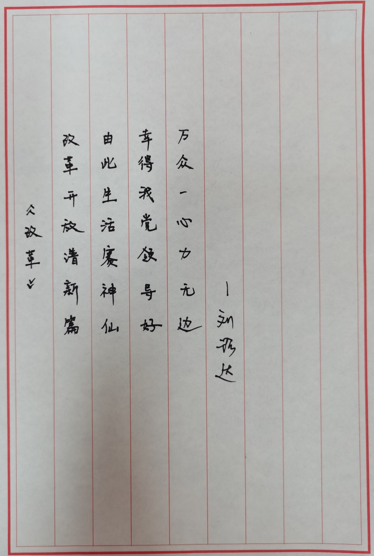 看红旗招展绘辉煌,珍和平繁荣惜今朝。
