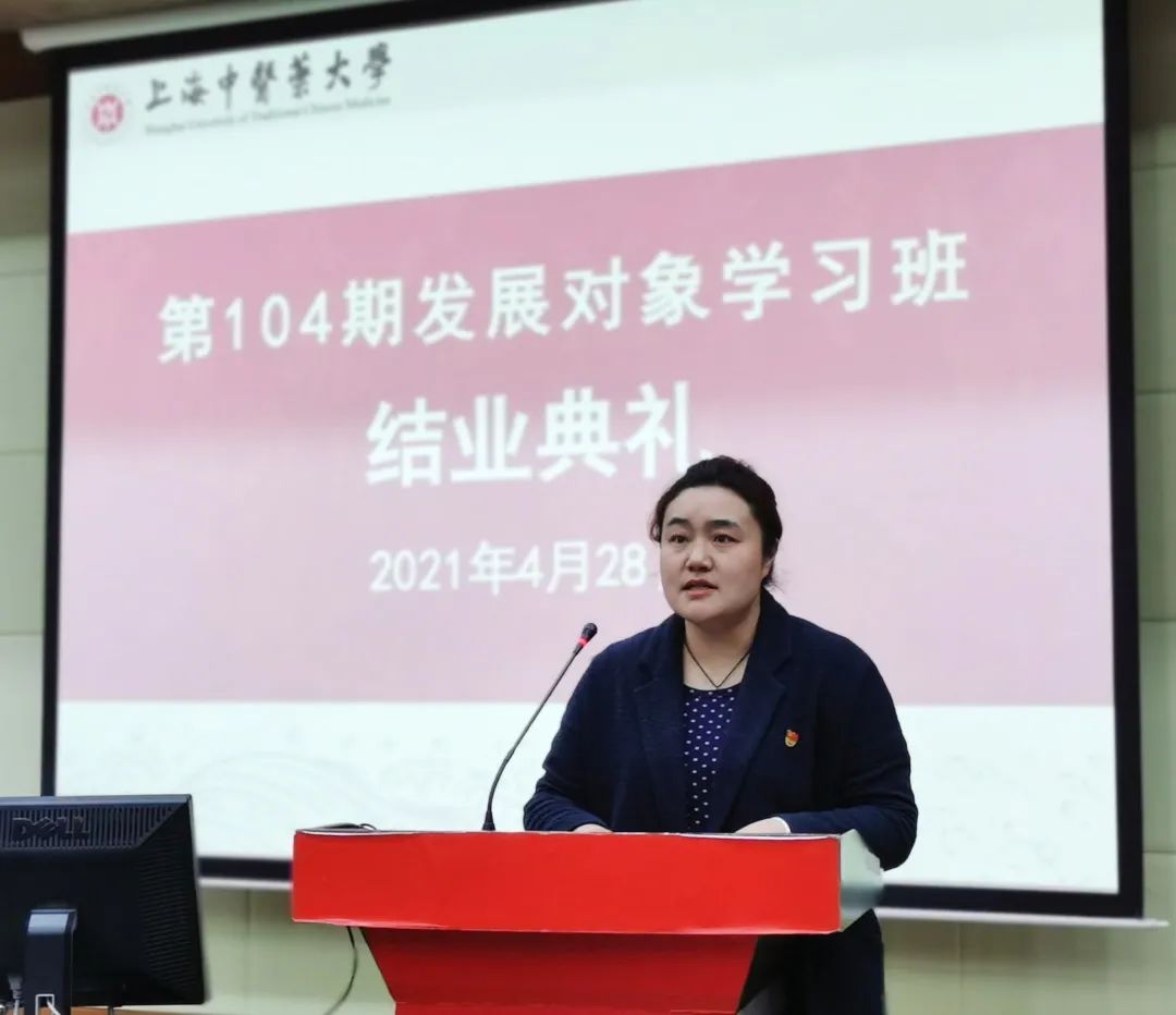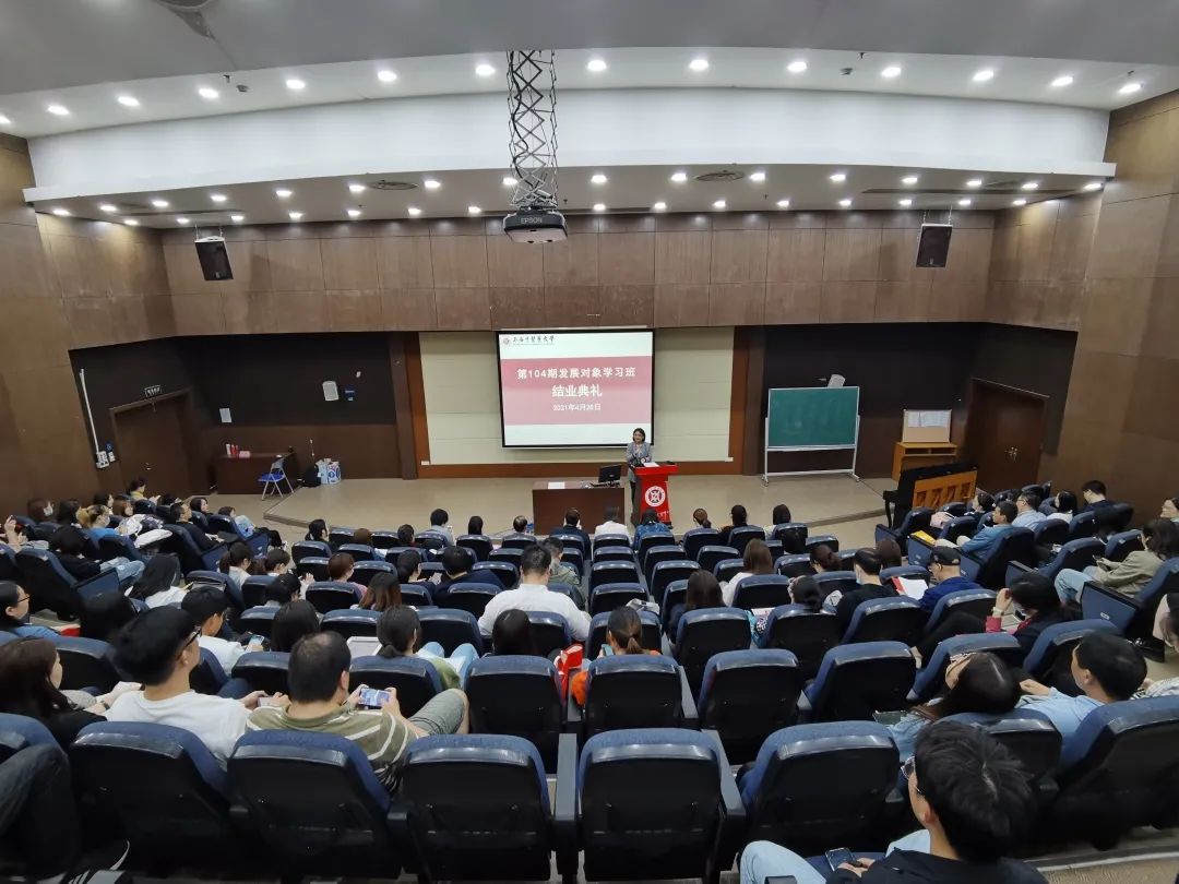 4月28日下午,校第104期发展对象培训班结业典礼在6504举行。校组织(统战、党校)副部长严月华、校组织部组织员千英信、护理公司党总支书记史美育、中药公司党委副书记沈漫、公共健康公司党总支副书记干旦峰及培训班班主任、指导老师等出席会议。会议由培训班班主任、伟德组织员何丹丹主持。