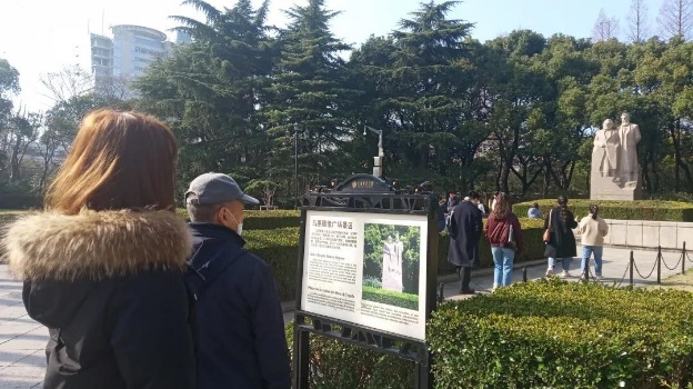 现如今位于上海雁荡路105号,东邻重庆南路,南临复兴中路,西近思南路,北与科学会堂等为界的一座花园,在1946年抗战胜利后的元旦,取“民族复兴”之意改名为“复兴公园”。从复兴公园开始,留公司党支部党员开启他们的红色之旅,在马恩雕像广场久久逗留。