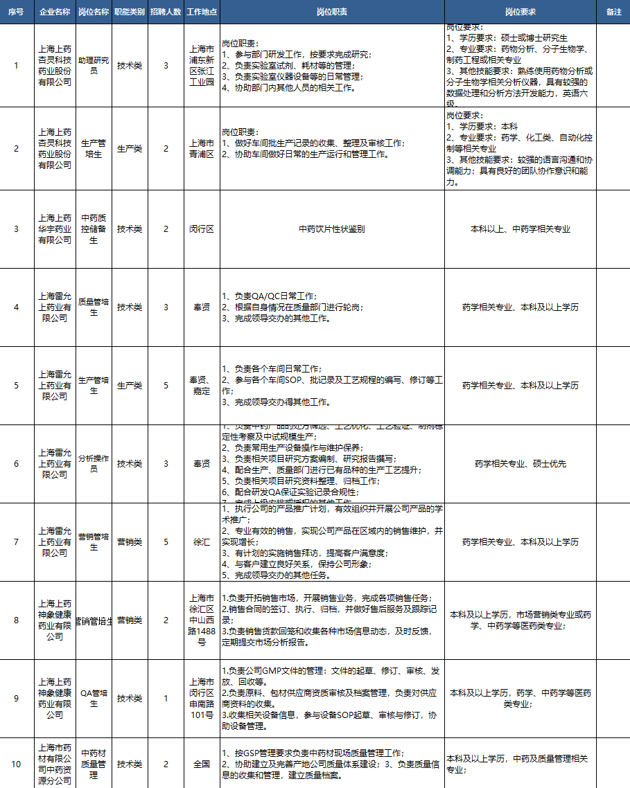4. 宣讲企业:上海市药材有限公司、上海雷允上药业西区有限公司、上海和黄药业有限公司、四川新绿色药业科技发展有限公司、中国医药工业研究总院上海益诺思生物技术股份有限公司
