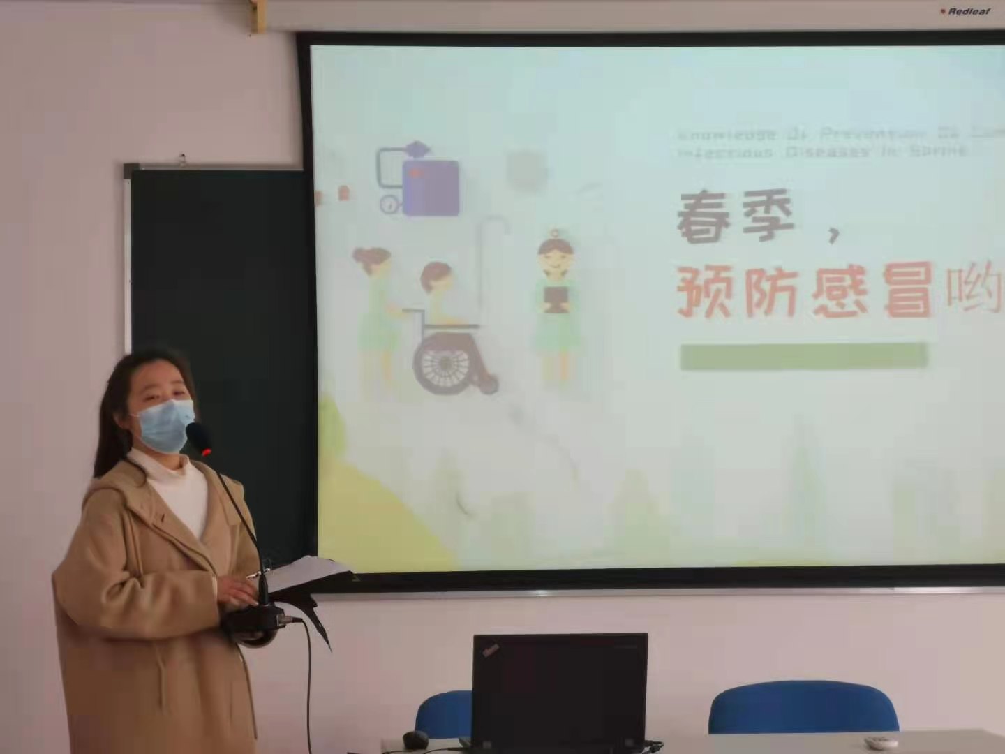 本次活动共分为两个环节。第一环节由18级药学班的蒋漪同学为居民们带来《春季,预防感冒的小方法》的小讲堂。一开始,蒋漪同学向居民们介绍了一些春季预防流行感冒的相关方法。在日常生活中,注意锻炼、心情愉悦、及时增减衣物、多喝水、保证个人卫生、良好的生活习惯,注意饮食,不论任何疾病,都是机体免疫力与致病因素之间相互作用的结果,如果机体抵抗力强于致病因素的作用,那么机体就会非常健康。除此之外,还有一些预防感冒的小窍门,热水泡脚、冷水洗脸、盐水漱口、按摩鼻沟等等的小方法,让居民们对于春季预防流行感冒的相关方法有了一定的了解。