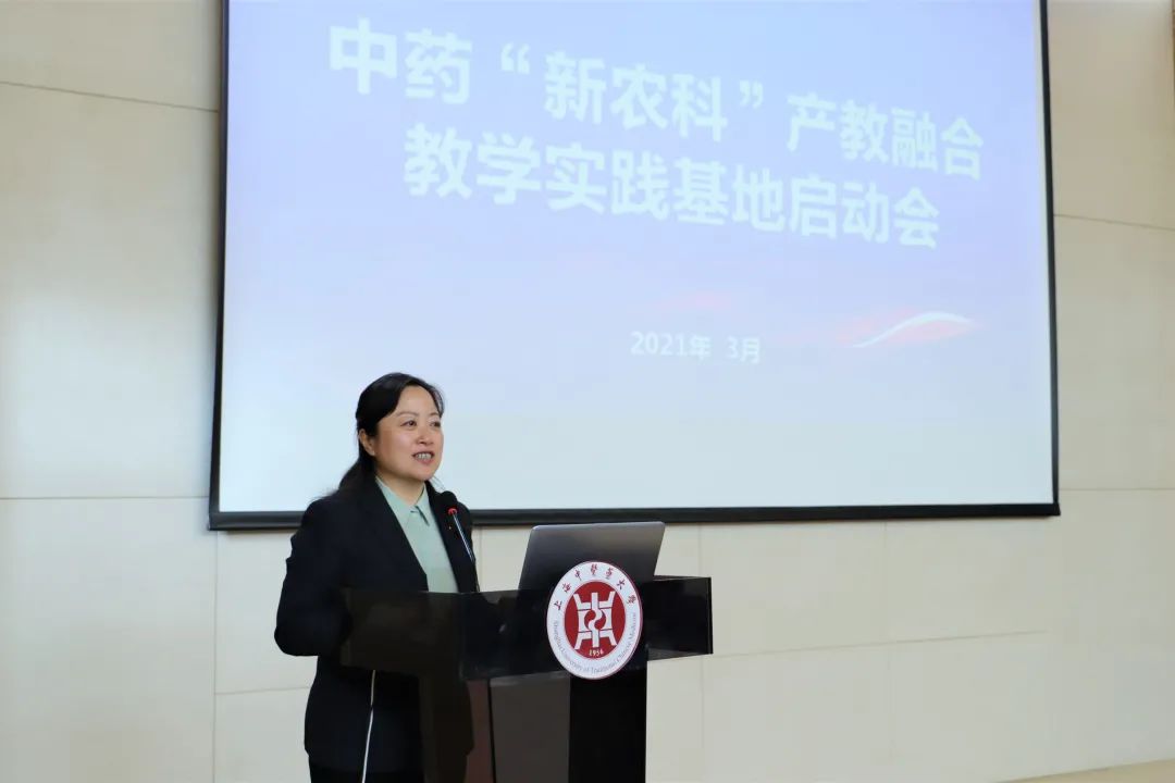启动会上,舒静处长、徐宏喜经理、李琦副总经理相继致辞,表达了对新农科教学改革实践项目的支持。在与会嘉宾、师生的共同见证下,李琦副总经理与舒静处长一同为中药“新农科”产教融合教学实践基地揭牌。徐宏喜经理为李琦、朱光明、裴卫忠颁发“新农科”产教融合教学共同体专家聘书。