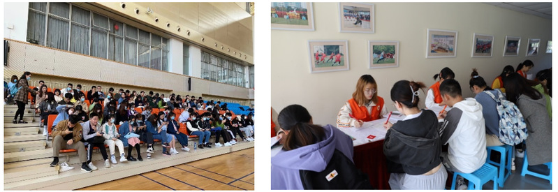 在体育馆内,除了同学之外,也不乏熟悉的老师们。我们对老师们的了解,可能仅限于在课堂上,在答疑时,但是献血活动让我们看到了老师的另外一面。今年,伟德的宋龙老师和王慧珠老师也加入了献血的队伍中,让我们也一起为老师们打call~