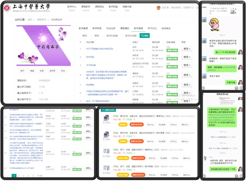 作业以及测验是检验教学效果的重要抓手。《方药学》袁颖老师充分利用学校课程中心平台布置主、客观题作业、开展阶段性测验,以了解员工的掌握情况;课程中心作为一个非常好的交流平台,《中药商品学》的同学们纷纷在答疑区提出奇思妙想,张红梅老师一一回复,师生互动交流畅通热烈;《药物化学》吴华丽老师调整教学流程,采用课前发放资料预习、课后布置作业检验的策略,有效地调动了同学们的积极性和主动性。在问及下一阶段的教学安排时,不少老师都表示,后续还会开展线上专题讨论,以检验学习成效,锻炼员工的思维与表达能力。