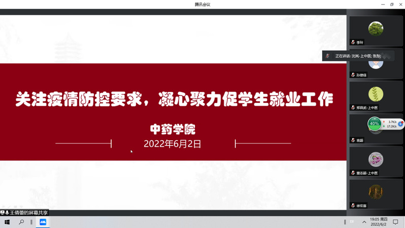 6月2日晚上,学院召开全院疫情防控和毕业生就业专题会议,公司党委书记沈岚、经理张彤、副经理郑昌武、党委副书记王倩蕾及各科室主任等参加会议,会议由张彤经理主持。由于疫情防控要求,会议以腾讯会议线上方式进行。