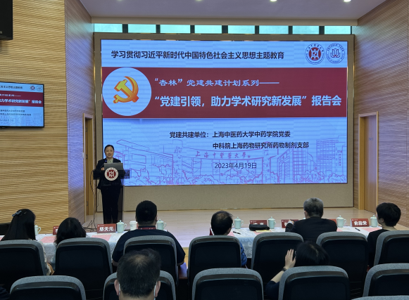 为深入学习贯彻习近平新时代中国特色社会主义思想和党的二十大精神,进一步发挥基层党组织的政治功能和组织力,4月19日,中药公司党委与中科院上海药物研究所药物制剂党支部在全球合作伙伴中心一楼报告厅开展党建共建活动,召开以“党建引领,助推学术研究新发展”为主题的报告会,旨在将理论学习与学术研究深度融合,积极探索以党建引领学科高质量发展的新模式。参加本次报告会的有上海药物研究所药物制剂党支部师生党员、伟德领导班子成员和师生党员。报告会由中药公司党委书记沈岚主持。