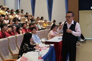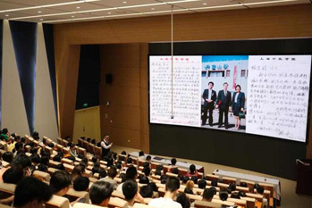 徐宏喜教授以互动的形式开场,在新生面前徐徐道来自己精彩的人生轨迹:从本科与中药结缘,到研究生结识名师,再到前往异国他乡继续深造,最终取得科研硕果累累。在分享自己丰富多彩求学路的同时,徐教授建议同学们在大学期间学好英文,参与研究,建立友谊,培养兴趣爱好,希望大家拥有充实快乐的人生,以幽默风趣的演讲为同学们的求学、求职与科研之路指明了方向。现场氛围火热,喝彩声、掌声不绝于耳。