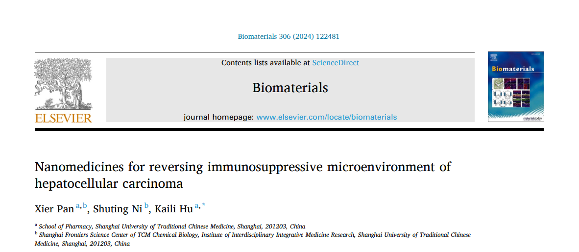 公司胡凯莉研究员团队在Biomaterials发表纳米药物逆转肝细胞癌免疫抑制微环境综述文章