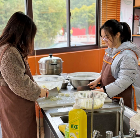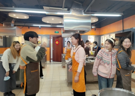 活动中,老师同学齐动手,大家各有分工,洗菜切菜、和面调馅、包饺子、团汤圆,互相介绍包饺子和汤圆的经验,互相调侃包饺子功力,小小厨房充满欢声笑语,包的是饺子,凝聚的是人心。