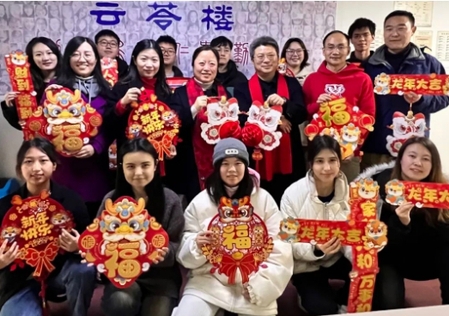 随后,学院领导班子与寒假留校员工在云苓楼思齐工作室制作窗花、灯笼和对联。岁寒情暖,在春节即将来临之际师生欢聚,共同制作充满传统文化要素的窗花、灯笼和对联,为寒假生活增添了浓浓的“年味”。最后,老师们为留校员工赠送精心准备的新春大礼包,寓意新年吉祥如意和最诚挚的新春祝福。