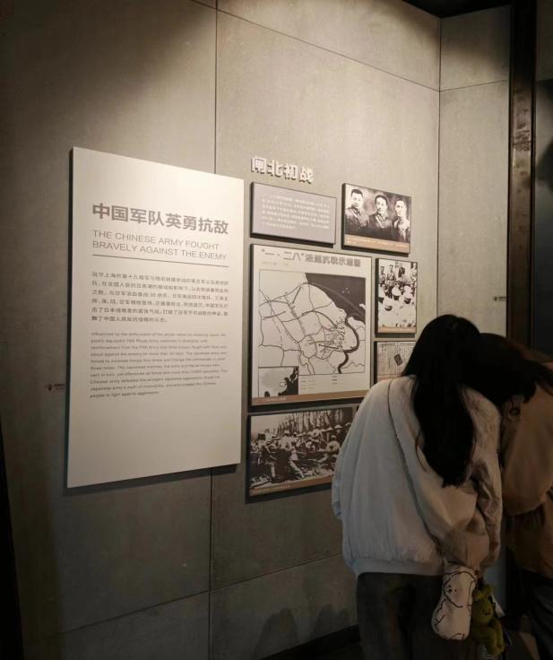 参观整个纪念馆,让我们深刻体会到在深重的民族危机面前,抗日民族统一战线是中国人民赢得抗日胜利不可或缺的重要因素。一支武器设备明显处于劣势的军队应战一群装备精良野心勃勃的侵略者,整整牵制住敌方长达三个月的时间,他们凭什么可以做到这点?就凭着他们对国家至死不渝的深沉大爱,就凭着他们那股“毅魄归来日,灵旗空际看”的英雄气概!