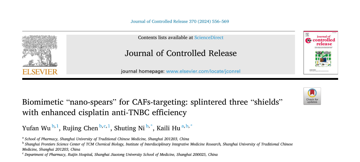 公司胡凯莉团队构建仿生肿瘤相关成纤维细胞靶向递药系统联合化疗提高三阴性乳腺癌的治疗效果