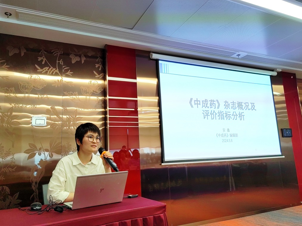 安鑫副主编以“中成药杂志概况及评价指标分析”分享了《中成药》杂志概况。中成药自1978年创刊,被中国科学引文数据库来源期刊、中国中文核心期刊、中国科技核心期刊等多个数据库收录。并从核心期刊遴选体系、期刊量化指标如综合影响因子、基金论文比、他引率等方面带领大家了解《中成药》及国内中医药期刊的影响力。