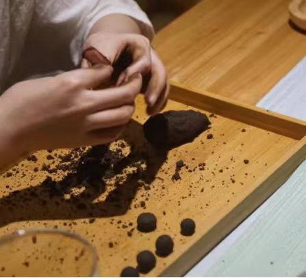 香丸源于中医的蜜丸是在中医熏蒸疗法的理论基础上延伸出来的中医治疗方法的生活化体现。“香”是纯阳之性特别是香药调和成的香丸因没有烟火的燥热其补足正气祛除邪气防病养生的效果最佳本次制作的香丸中,主要包含了陈皮、紫苏、檀香以及艾草。陈皮药性温和,不仅能理气健脾、燥湿化痰,还能调中、止痛,其香味浓郁持久。紫苏是解表散寒、行气和胃的良药,具有抑菌、解热、抗炎和抗氧的药理作用。檀香具有行气止痛、散寒调中的功效,此外还具有一定的抗菌和镇静安神的功能。艾草香味浓烈,全草可以入药,端午素来有挂艾草的寓意,用于驱虫杀菌,祛邪避害,祈福纳吉。