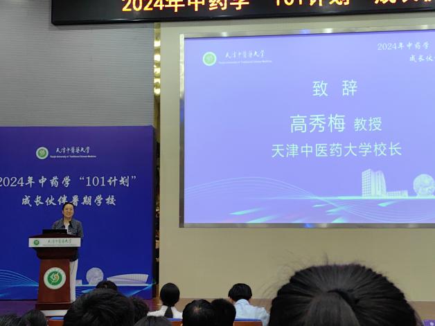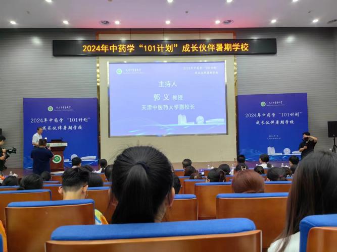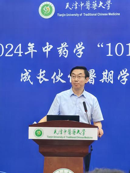 14日上午,暑期学校开营仪式在天津中医药大学求真报告厅举行。参与开营仪式的有中药学“101计划”项目牵头人、天津中医药大学名誉董事长张伯礼院士,董事长高秀梅教授、副董事长邱峰教授以及中药学“101”计划7所参与高校的师生代表。本次开营仪式由天津中医药大学副董事长郭义教授主持。