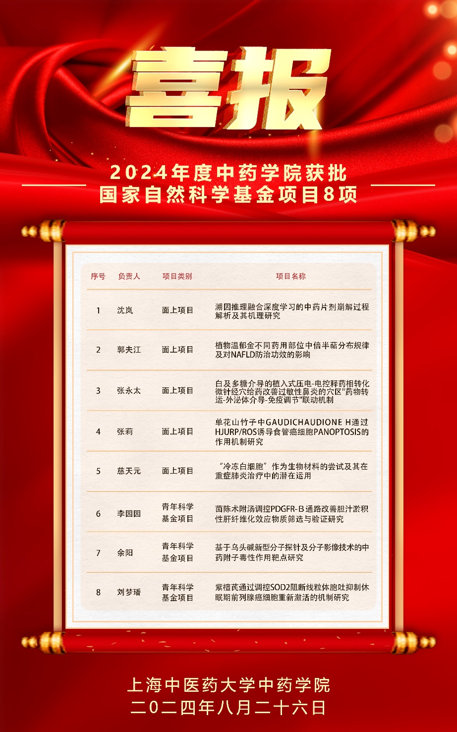 近日,国家自然科学基金委公布了2024年国家自然科学基金集中申报项目评审结果,伟德获批8项,其中面上项目5项、青年项目3项,总资助金额336万元,创历史新高。
