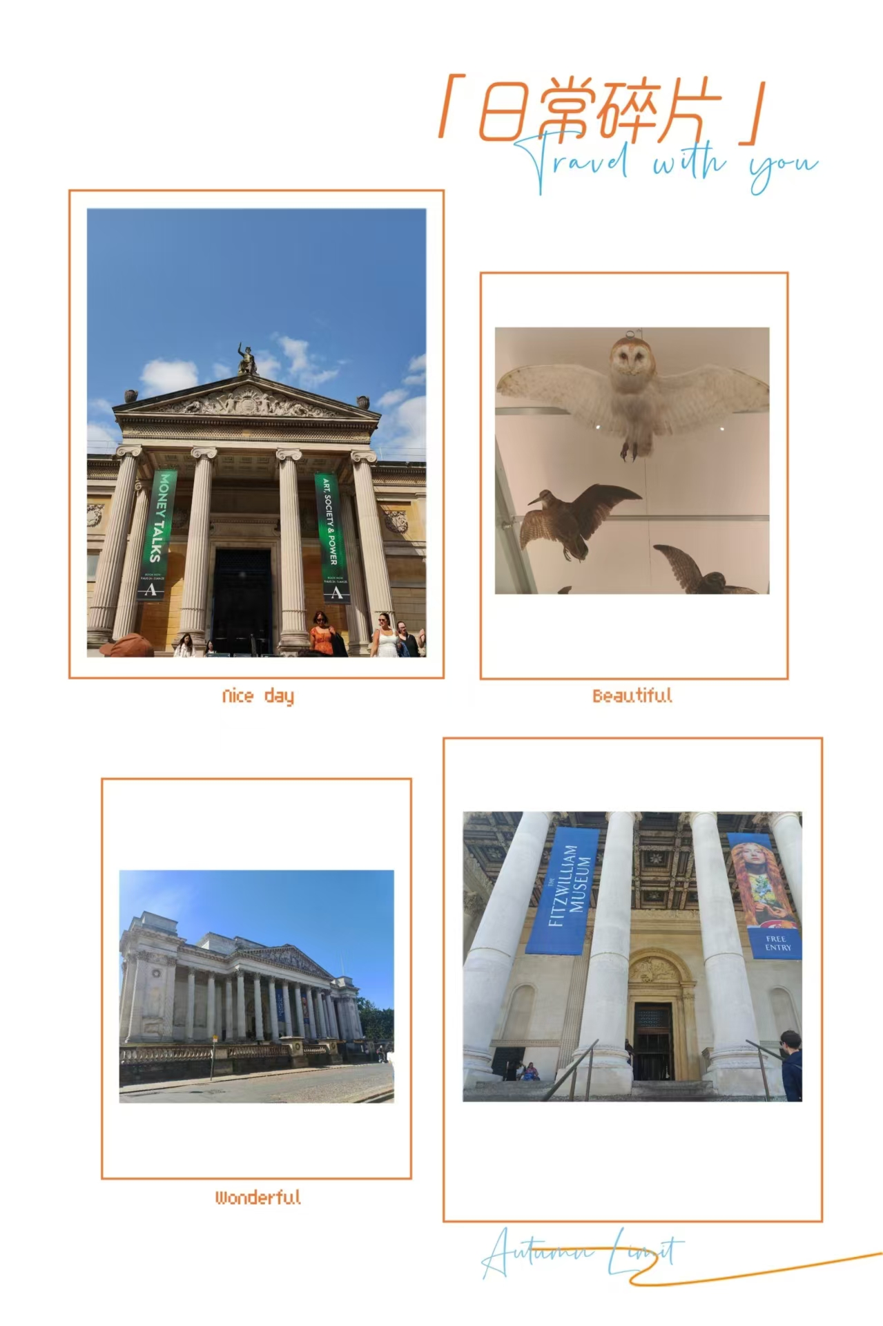 博物馆是英国的特色地标,每个馆都有其独有的特色藏品,不仅是各学院员工的学习资源,也免费对外开放。我们参观了动物学博物馆、菲兹威廉博物馆、考古和人类学博物馆等多个馆,游走在成列柜之间,看着琳琅满目的各类藏品,像是一场穿梭时间和空间的奇妙旅程。
