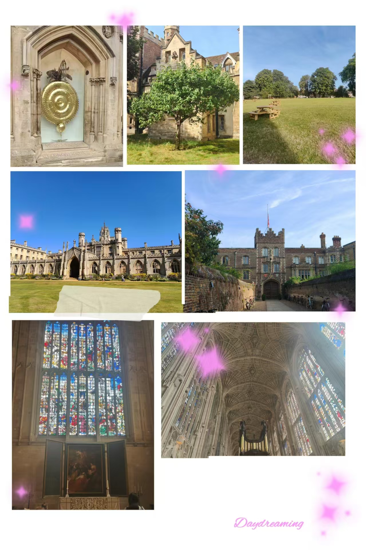 8月是剑桥天气最好的时候,天高云阔,与巍峨壮丽的哥特式建筑相得益彰。高大城堡和广阔草坪是每个学院的标配,错落有致地分布在康河两岸。同学们参观了国王学院及其著名的礼拜堂,感受剑桥大学深厚的历史底蕴与西方人虔诚的宗教文化;打卡了圣三一学院外那棵砸出了万有引力定律的苹果树;在剑桥市中心的圣体钟前,看着蚱蜢吞噬时间,感受到了时间的宝贵和生命的短暂。