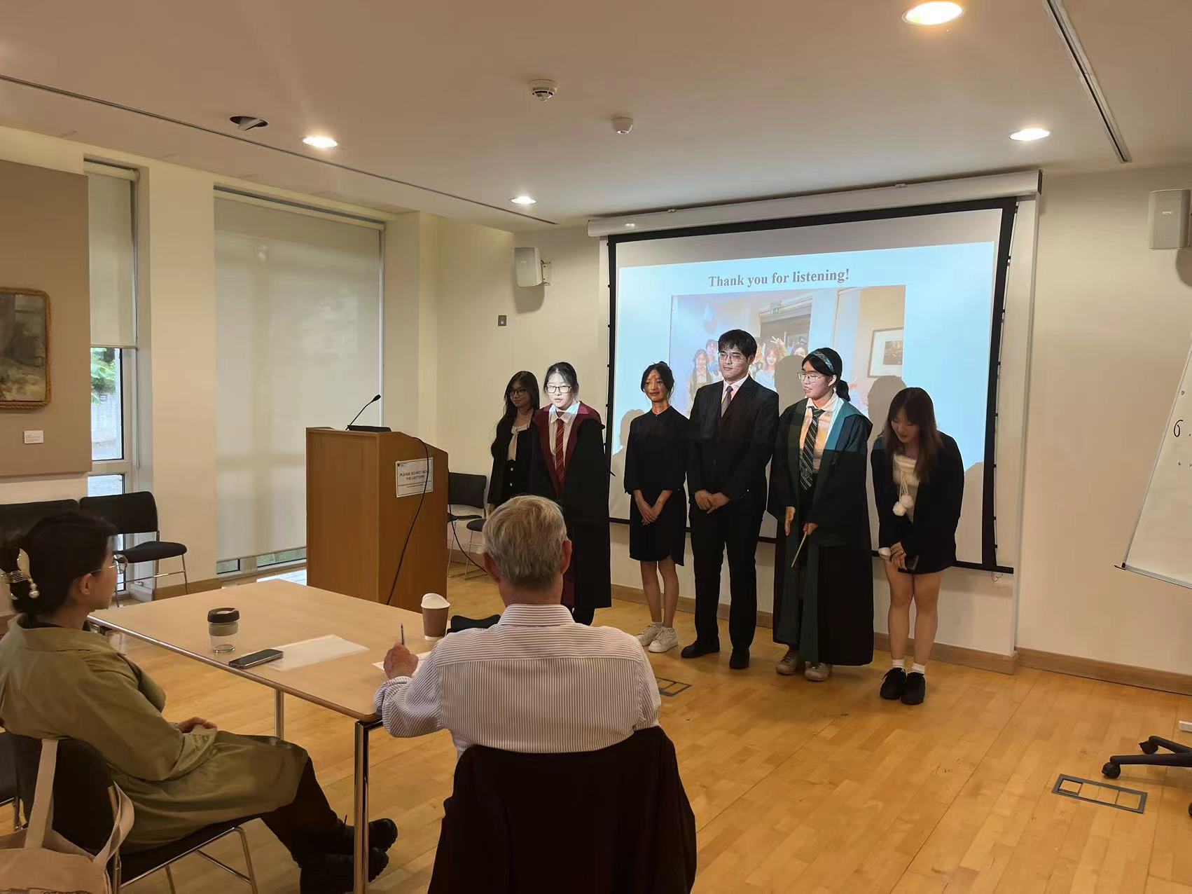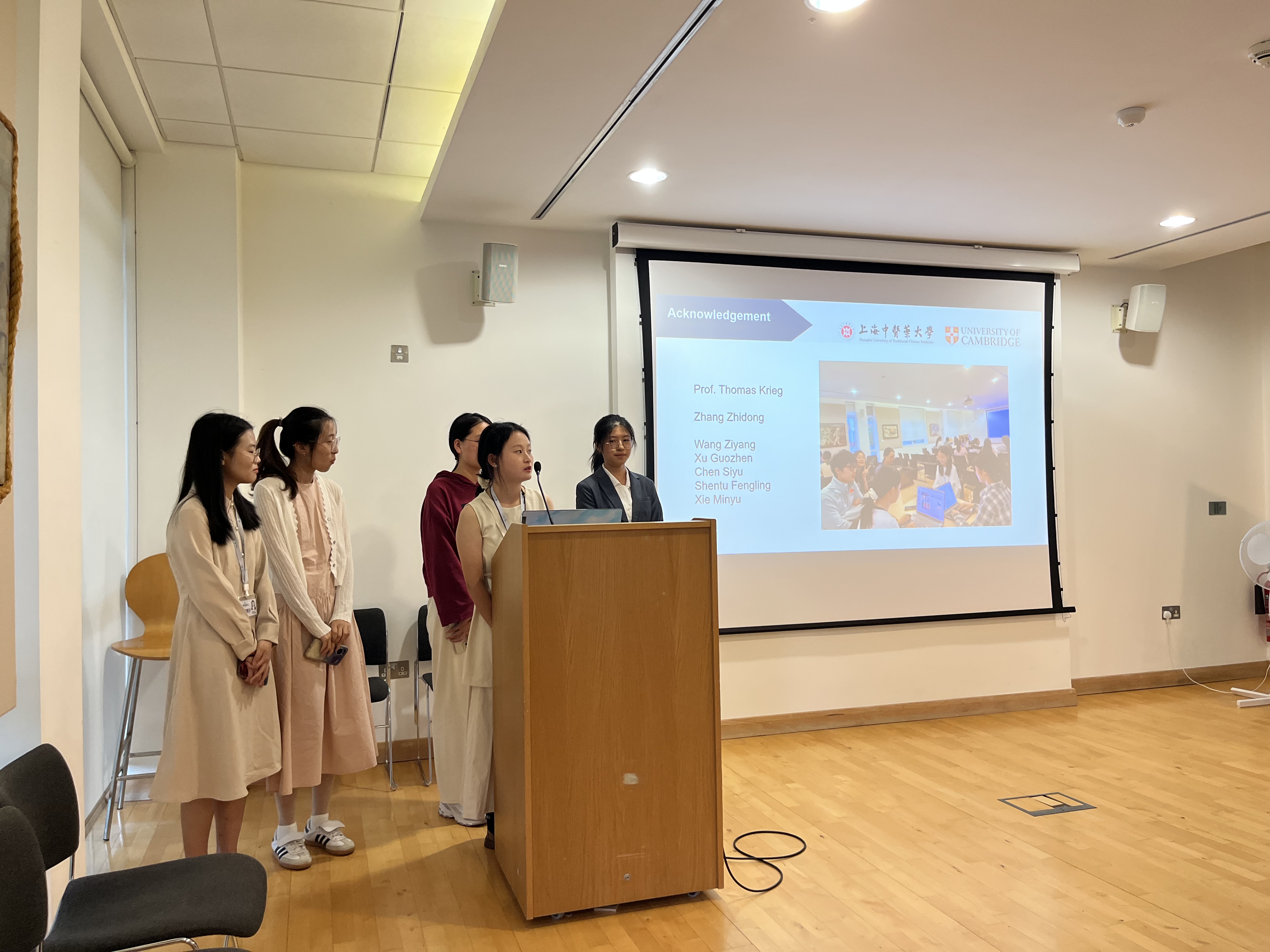 经过近2周的学习,访学团的同学们迎来了结业汇报。这一环节要求以小组为单位,自拟主题,通过4-5次小组讨论,完成一个15分钟左右的全英语演讲。项目主讲教师剑桥大学临床医学教授Thomas Krieg作为评审专家出席活动。本次结业汇报不仅是对公司学子访学成果的总结,更是他们学术成长与跨国交流能力的一次生动展现。每位学子都以饱满的热情和专业的态度,向大家展示了他们在剑桥访学期间的学术收获。