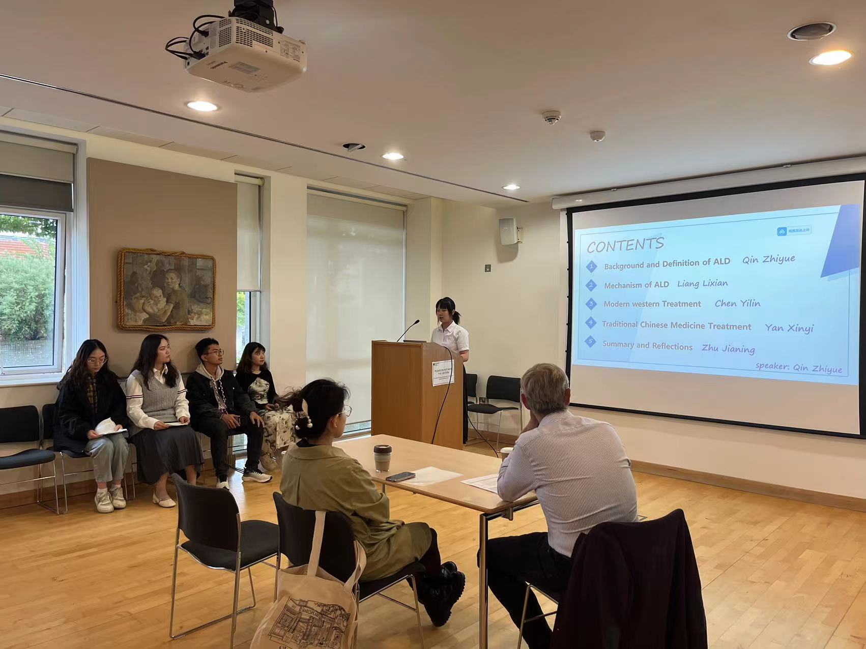 第一组同学的选题为酒精性肝病(ALD)的治疗机制,介绍了ALD的定义、发病机制、现代西医治疗以及中医药治疗手段,并展望了现代医学与中医药相结合对ALD治疗的推动作用。