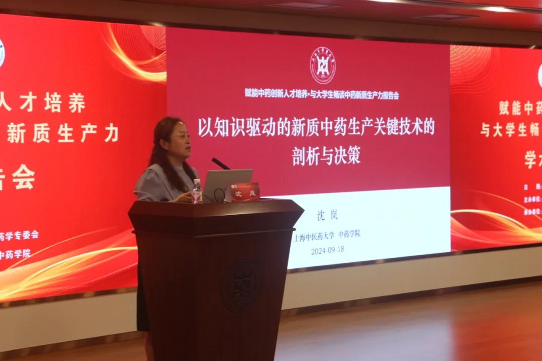 在学术报告环节,上海药物所研究员甘勇以《药物载体理性设计及创新制剂的探索与实践》为题,从创新药物的难点出发,深入浅出地讲述了其团队基于关键物理属性的纳米药物载体设计研究与成果,并分享了3个创新药物制剂转化的实例。随后,上海市药学会中药学专委会主任委员、伟德中药公司党委书记沈岚进行了题为《以知识驱动的新质中药生产关键技术的剖析与决策》的报告,系统地介绍了QbD理念的起源与发展,以及在中药制剂中的应用;基于中药制剂研发与生产中的问题,引入专家系统,并以具体实例阐述了专家系统在处方设计及制剂全生命周期质量控制中的应用。精彩的报告吸引了与会的专家和师生,现场讨论热烈。