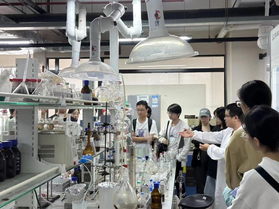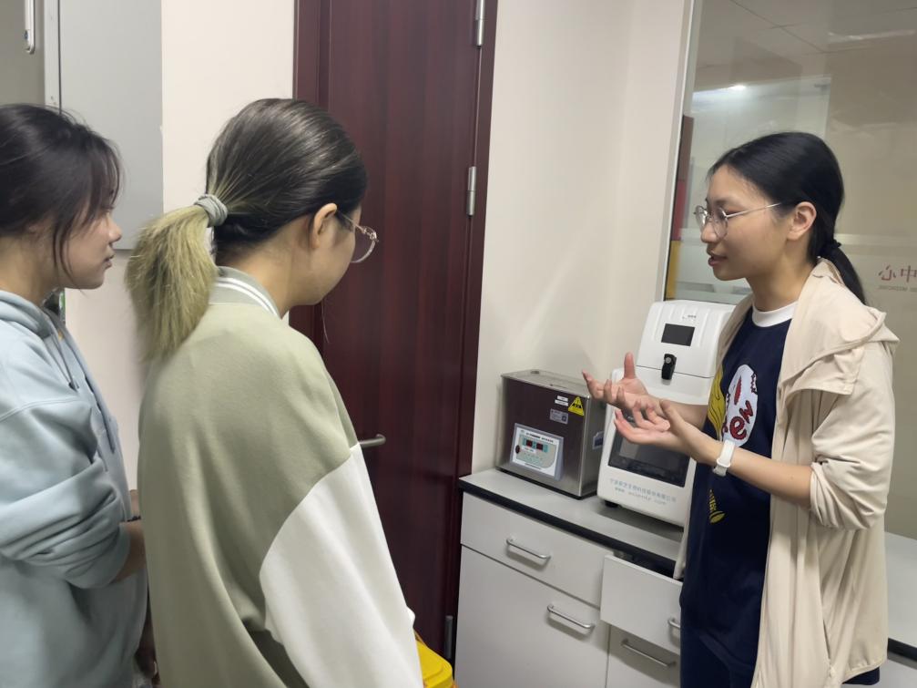 在药剂实验室,党员学长学姐们展示了近年来药剂经皮给药方向的创新性成果,以及相关实验仪器的原理和使用,面对学弟学妹们的积极提问,党员同志耐心解答,现场互动频繁,气氛热烈。
