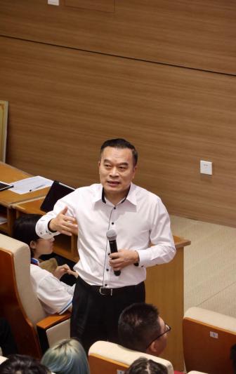 最后,徐宏喜教授为新生们提供了两点建议,其一就是学好英文,以便与国际接轨,接收先进的知识;其二便是多出国走走,在了解世界的同时了解自我,培养独立分析独立辨析的能力,要学会问问题,才能更了解事物的本质。