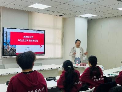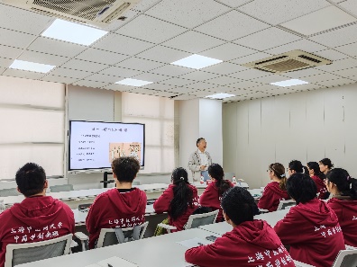 紧接着,余董事长通过对中医教育发展的回顾,讲述了从古至今的官办医学教育、现代办学方式的中医教育机构和上海民办中医教育机构。随后,余董事长介绍上中医建院及大学历史沿革,同学们在余董事长的带领下,一同回顾了1956年成立、1984年合署、1993年更名、2003年东迁和2017年至今的学校发展的点点滴滴。回顾校史,同学们收获颇丰,增强了对学校的归属感与认同感,更激励同学们弘扬前辈精神,攀登时代高峰,接过新时代接力棒,牢记中药人守正创新的责任使命。