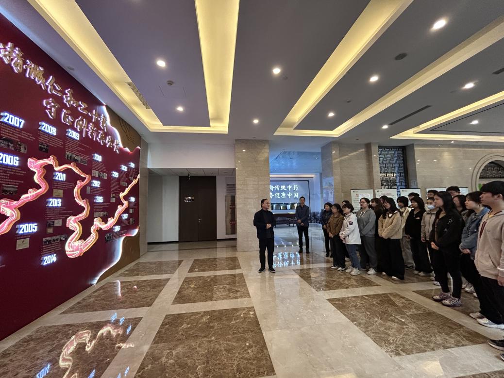 活动伊始,和黄药业相关负责人向师生们详细介绍了公司的发展历程、企业文化,还详细讲解了各类产品的研发、生产和市场定位。作为一家集中药研发、生产、销售于一体的现代化企业,其拳头产品如麝香保心丸、胆宁片等,不仅在国内市场广受认可,更在国际舞台上展现了中药的独特价值。通过这一环节,同学们对中医药企业的运营模式有了初步的认识,打破了书本知识的局限。