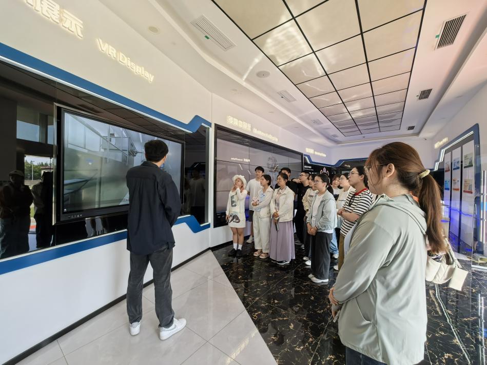 在车间参观环节,师生分批进入固体制剂车间与小容量注射剂车间,实地观摩智能化生产线。车间负责人郭明敏结合设备运行、工艺流程等,讲解了现代中药生产的数字化与标准化实践。智能展厅内,员工通过沉浸式体验,直观感受中药制剂从研发到成品的全链条技术革新。“课本知识与实际生产的结合,让我对职业方向有了更清晰的认知。”2024级中药学创新班员工黄宝宇在现场交流中感慨道。