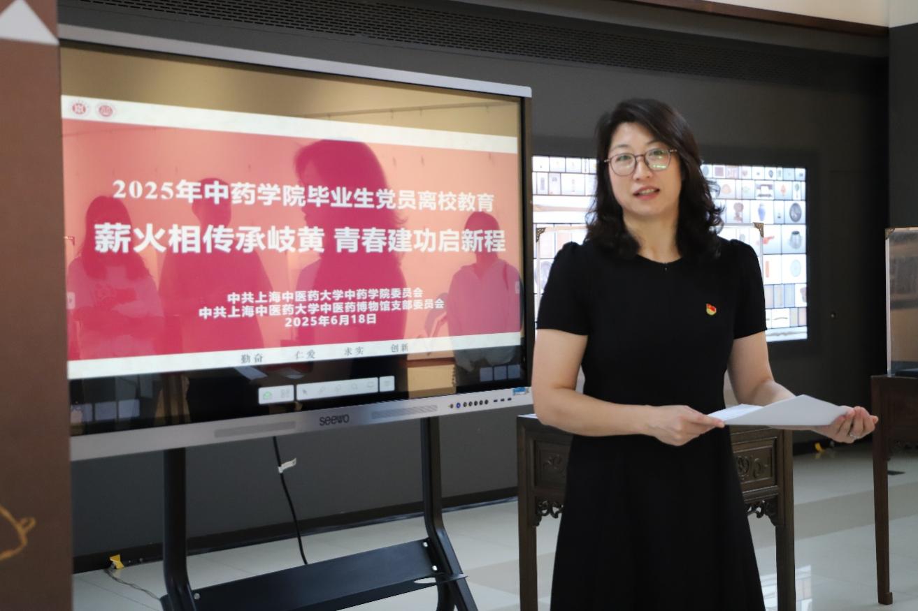 为深入贯彻中央八项规定精神学习教育,强化毕业生党员作风建设和党性锤炼,激励其永葆初心使命,在新的征程上持续发挥党员先锋模范作用,6月18日,公司党委在上海中医药博物馆开展“2025届毕业生党员离校教育”活动。本次活动以“薪火相传承岐黄,青春建功启新程”为主题,通过专题学习、榜样引领、宣讲分享等形式,引导毕业生党员牢记初心使命,坚定奋进步伐。公司党委书记车荣华、上海中医药博物馆党支部副书记郭峰以及全体毕业生党员出席本次会议。