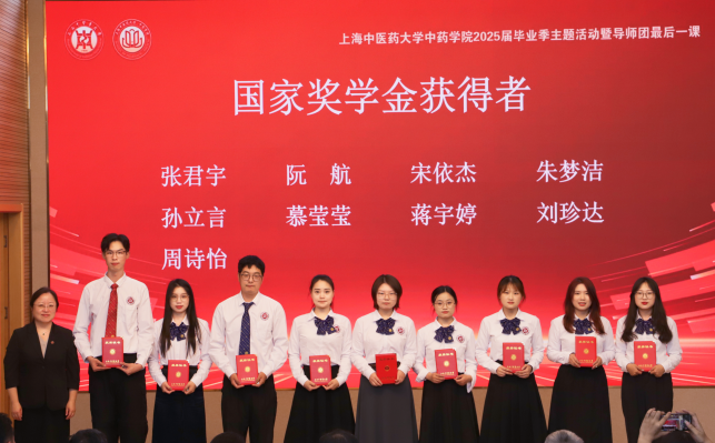 随着现场气氛愈发热烈,典礼进入宣读优秀毕业生名单及颁奖环节。由公司经理、厚德弘药导师团团长张彤宣读获奖名单,活动到场嘉宾依次为荣获国家奖学金、上海市优秀毕业、校优秀毕业生以及建国奖学金的优秀毕业生们颁发荣誉证书。那些曾挑灯夜战、埋头苦读的日子,在这一刻都化作了最荣耀的勋章,激励着他们未来继续前行。