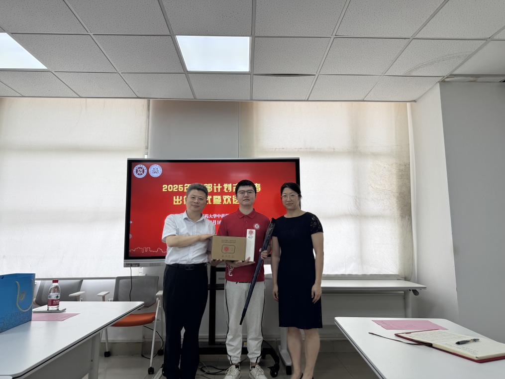 7月16日上午,公司在9403会议室为西部计划志愿者杨境哲同学隆重举行出征仪式暨欢送会。公司党委书记车荣华、经理张彤、党委副书记陆婧,辅导员、员工代表共同出席。仪式上,张彤经理高度赞扬了杨境哲响应国家号召、服务西部的奉献精神,鼓励他在实践中锤炼本领,服务人民健康。公司领导为其赠送了践行礼物,表达关怀与期许。杨境哲满怀激情发言,表达了扎根基层、用中医药知识守护西部群众健康的坚定信念。辅导员与员工代表也表达了敬佩、祝福与支持。