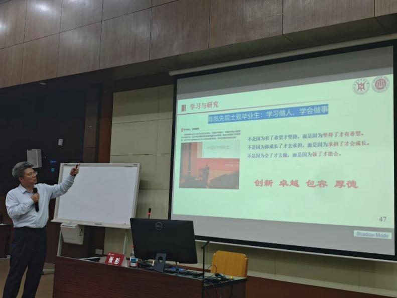 张彤经理以新生如何开展大学的学习研究为话题,详细阐述了学校及学院的发展历程、学校办学的使命和愿景以及立德树人的理念,倡导中医药文化和现代科学素养的有机结合,加强对中医药的传承创新发展。引用陈凯先院士“坚持了才有希望,承担了才会成长,做了才能会”的箴言,号召新生以“仰望星空的志向”和“脚踏实地的韧劲”,在张江药谷这片创新热土上勇攀高峰。