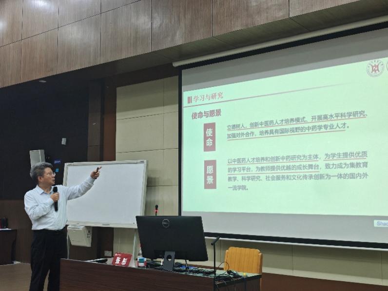 张彤经理以新生如何开展大学的学习研究为话题,详细阐述了学校及学院的发展历程、学校办学的使命和愿景以及立德树人的理念,倡导中医药文化和现代科学素养的有机结合,加强对中医药的传承创新发展。引用陈凯先院士“坚持了才有希望,承担了才会成长,做了才能会”的箴言,号召新生以“仰望星空的志向”和“脚踏实地的韧劲”,在张江药谷这片创新热土上勇攀高峰。