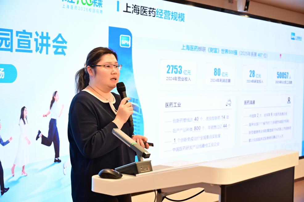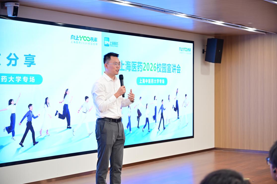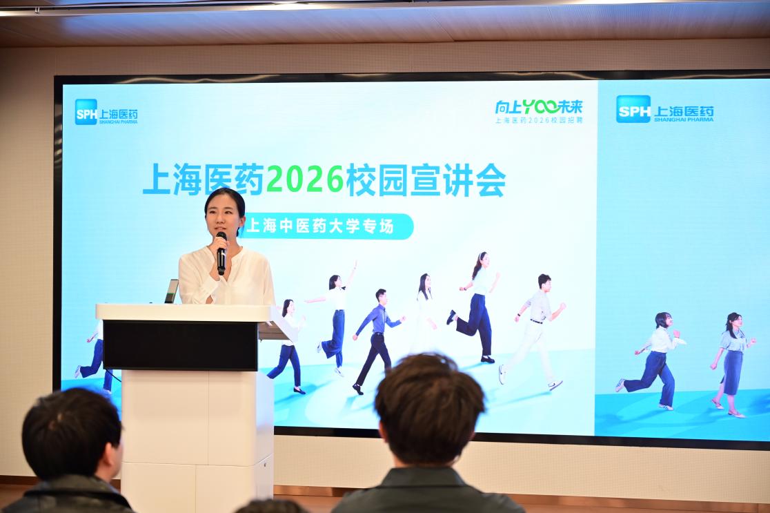 宣讲会伊始,上海医药人力资源部员工与发展高级经理高怡颖女士为在场学子带来了一场精彩纷呈的“上药全景解读”。她以凝练而富有感染力的语言,娓娓道来上药集团波澜壮阔的发展历程、稳中求进的当下布局以及面向未来的宏伟战略。紧接着,高经理重点推介了备受瞩目的“2026工培生计划”。该计划是上海医药为吸纳和培养未来核心骨干而精心打造的人才项目,旨在通过系统化的轮岗实践、定制化的导师辅导、多元化的赋能培训,帮助应届毕业生快速完成从校园到职场的华丽转身。