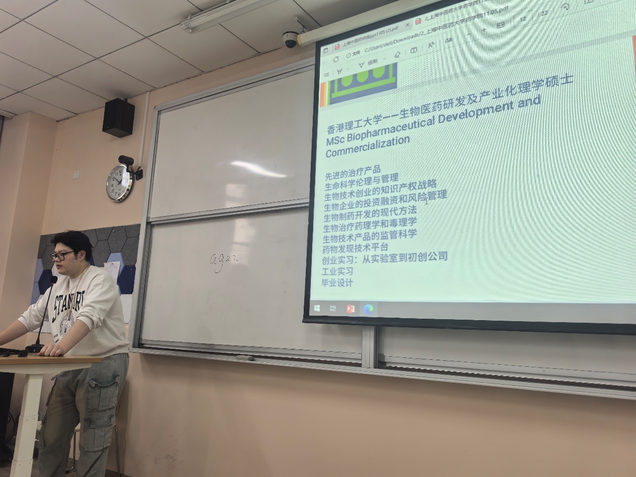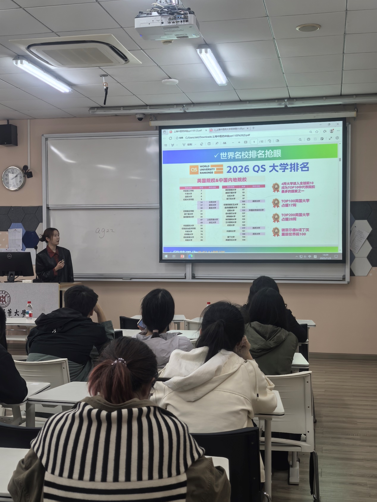 为精准对接毕业生就业升学需求,点亮学子海外深造之路,11月5日下午,公司在 10206教室成功举办了一场内容丰富、干货满满的出国留学专题讲座。本次活动特邀新东方资深留学指导老师杨子超、祁莎莎担任主讲,吸引了众多怀揣留学梦想的药学学子到场学习。讲座由辅导员陈秀兰主持。